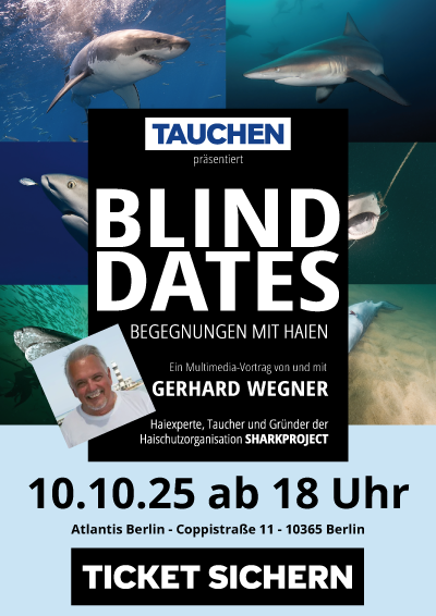 Seine Multimedia-Hai-Vorträge waren Kult und sind es wieder. Der Sharkproject-Gründer Gerhard Wegner, Hai-Experte und Buchautor – ist mit dem Magazin TAUCHEN auf gemeinsamer Vortragstour.